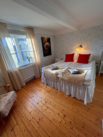 Detta är vårt mest romantiska rum, beläget på andra våningen med en rogivande utsikt mot skogen. Här omges du av naturens lugn och en stämningsfull atmosfär som bjuder in till avkoppling och närhet. Rummet är inrett i varma, somriga toner som skapar en mjuk och harmonisk känsla – perfekt för en romantisk vistelse eller en stillsam paus från vardagen.