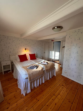 För din bekvämlighet är rummet utrustat med egen toalett och dusch samt TV med Chromecast, så att du enkelt kan koppla av och njuta av kvällen i din egen takt. Rummet passar utmärkt för två personer, men har även möjlighet till två extra bäddar, vilket gör det flexibelt för både par och mindre sällskap. I detta rum är det ej möjligt att ha med sin fyrbenta vän.